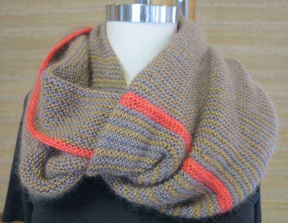 I still have three scarf projects that have not been shown on my site. The first is a yummy combination of Shibui Knits Cima and Silk Cloud held together.