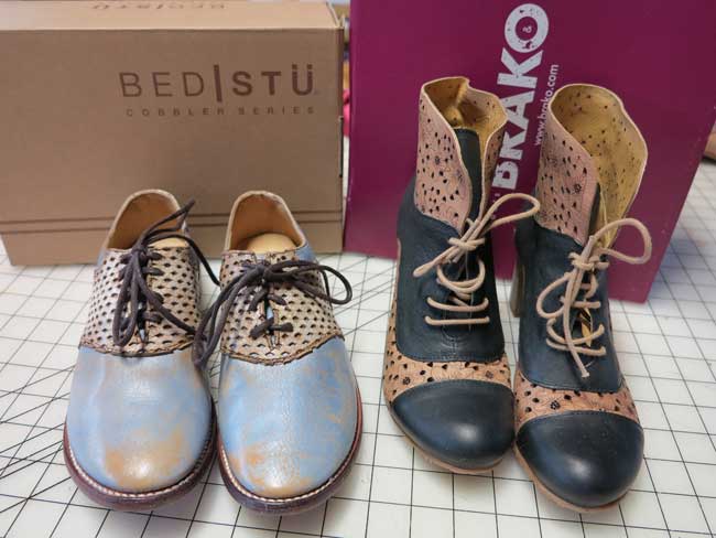 The third inspiration was the fabric that Debra found at a local thrift store. It feels and looks like leather and she found a couple of yards of this stuff for $4.00!