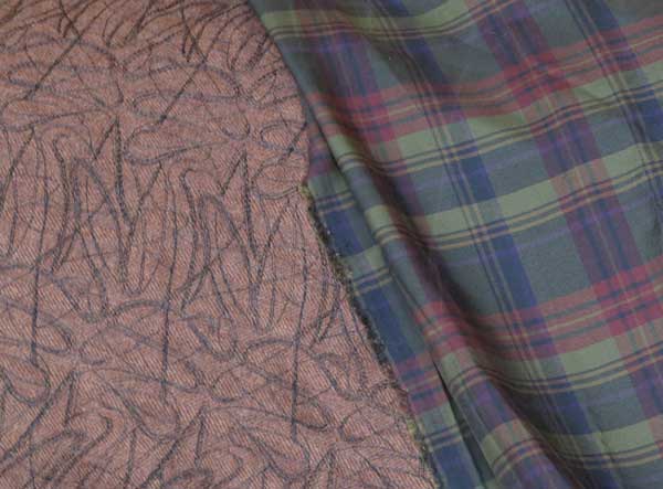I took the bolt over to the wools and the answer appeared. Two of the wools, a rusty orange and an olive green stood out instantly. OK baby, I was on a roll! (There is a twist to the coat at the end of this adventure.)